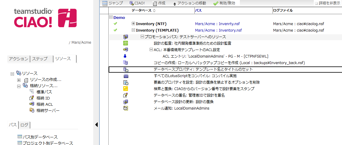 Teamstudio CIAO! を使用してデータベースプロパティを設定します。