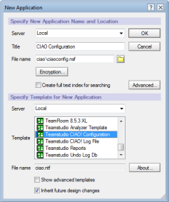- CIAO! 設定テンプレ―ト (ciao.ntf)を指定します。